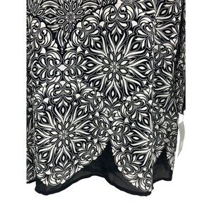 JM Collection Size Large Black White Geometric Stud V-Neck Tunic Top Blouse New