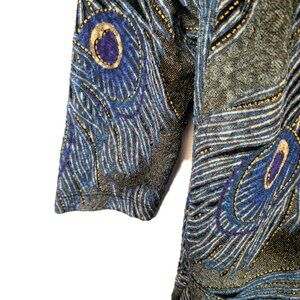 - Black inner tunic with blue peacock outer cardigan and sleeves
