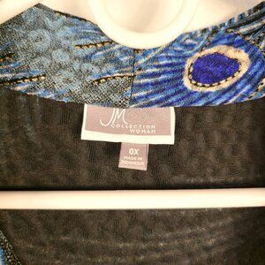 JM Collection Size OX Womens Blue Peacock Blouse Attached Cardigan Long Sleeve