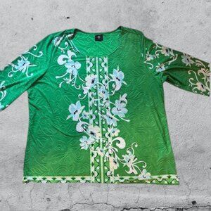 JM Collection Spring Green Print Scoop neck 3/4 Slv Top 4X