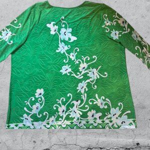 JM Collection Spring Green Print Scoop neck 3/4 Sleeve Top 4X