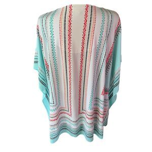 The JM Collection Striped Blue White Tunic Top in women's size XLarge is a stylish and comfortable blouse made from a blend of polyester and spandex. The top features a colorful striped pattern in blue and white, a tunic style, and a stretchy material for added comfort and flexibility. Perfect for everyday wear, this top is versatile and can be easily dressed up or down for various occasions.
