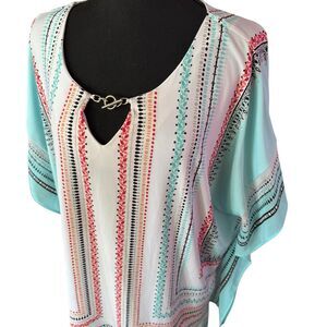 JM Collection Striped Blue White Tunic Top Women Size XLarge