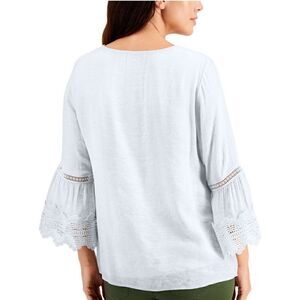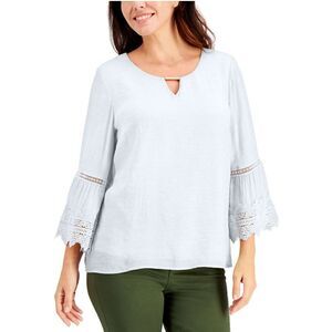 JM Collection Textured Bell-Sleeve Top Bright White S