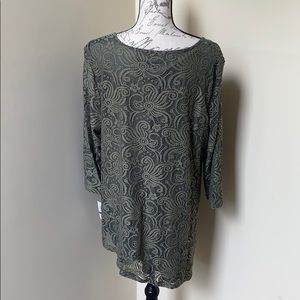 New with tags. Tunic length, asymmetrical top with lace detail. Lined.