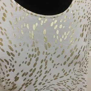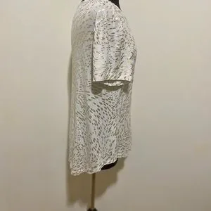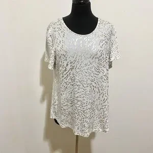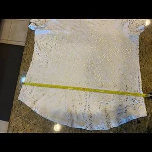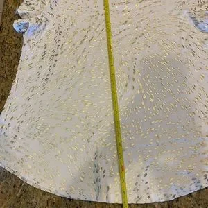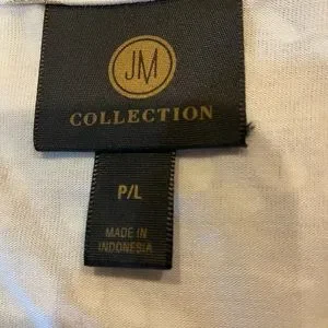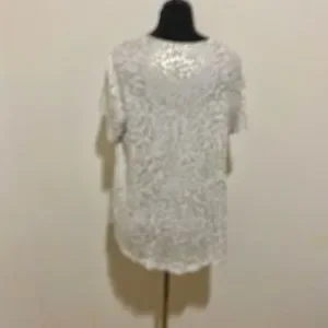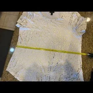EUC One owner. This is a great lightweight top with subtle sparkle. I’m 5’7” and wore this when I was a size 12. It was a little big on me so I think a 14 can wear it too. States it’s a petite large but it didn’t fit me like a petite. No stains, pulls or yellowing. Measurements in photo stream. Offers welcomed. 1022