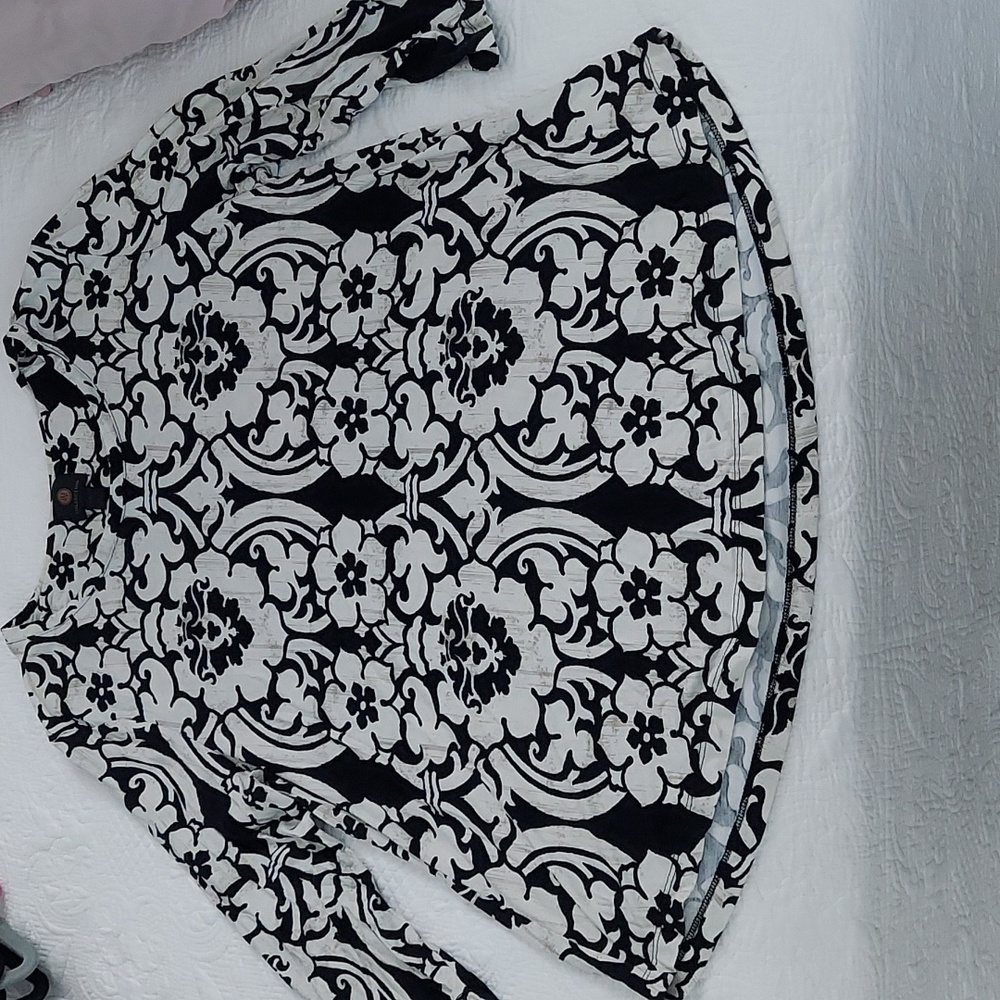 Very stretchy and forgiving with a majestic medallion print. Flattering rounded hem. Worn once. Pet/Smoke free home