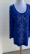 Cute top to wear for any occasion. In overall good condition. You’ll love the design. Has good stretch to it. pit to pit 27 inches and stretches to 33. Rayon95%, Spandex 5%. When laid flat bicep 8.5 inches. Front length is 31 inches. It’s really pretty.