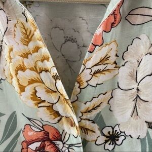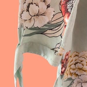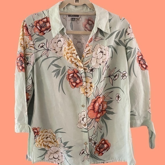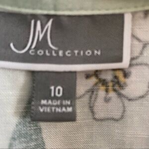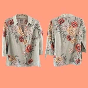 JM Collection Floral Button Down Blouse. Nice pattern on Light Green Background Size 10.