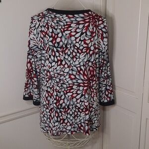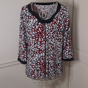 JM Collection red, gray, white, and black top 3/4 sleeves Good condition