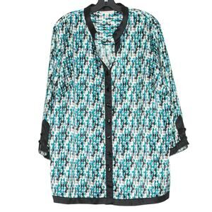 JM Collection Top Boho Retro Resort Minimalist Artsy Business Casual Button 22W