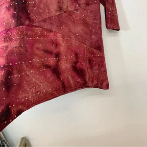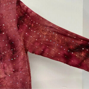 JM Collection Top Woman Large Pink Maroon Sequins Embroidery 3/4 Sleeve