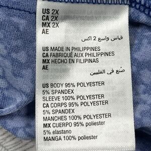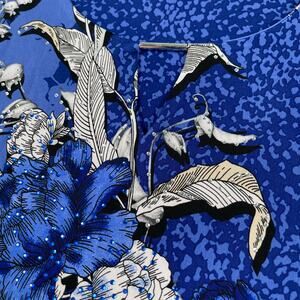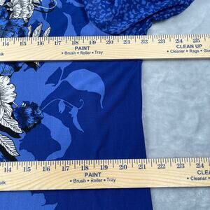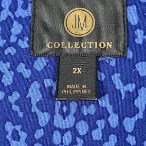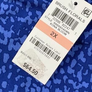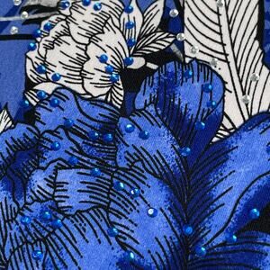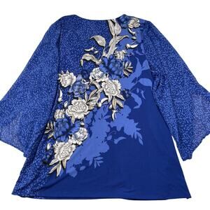 JM Collection Top Women Plus 2X Blue Kona Bloom Floral Rhinestones Sheer Sleeves