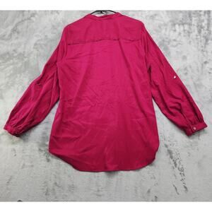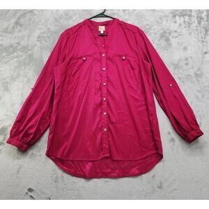 JM Collection Top Womens 14 Dark Pink Stretch Satin Button Up Roll Tab Sleeves