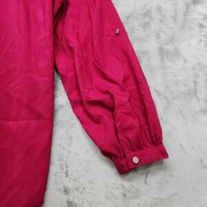 JM Collection Top Womens 14 Dark Pink Stretch Satin Button Up Roll Tab Sleeves Office Career Dressy