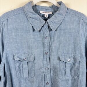 JM Collection Top Women's 16 Blue Chambray 100% Linen Roll Tab Sleeve Coastal - Excellent Used Condition - No flaws!