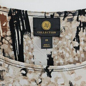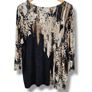 JM Collection Top Womens 2X Black Brown Abstract Print Textured Fall Stretch