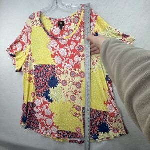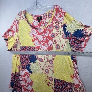 JM Collection Top Womens Plus 3X Yellow Floral Print Patchwork Stretch Bright