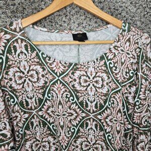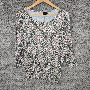 JM Collection Top Womens Small Green Printed Oversized Scoop Neck Tee Casual