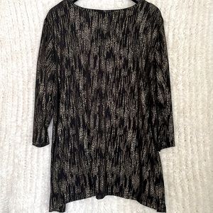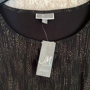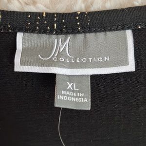 3/4 sleeve. Shark bite hem. JM Collection. Size XL. Black with shiny gold threading.