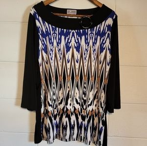 JM Collection polyester/spandex 3/4 sleeve multi color tunic size XL. In good pre-owned condition