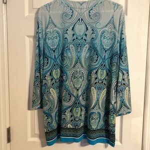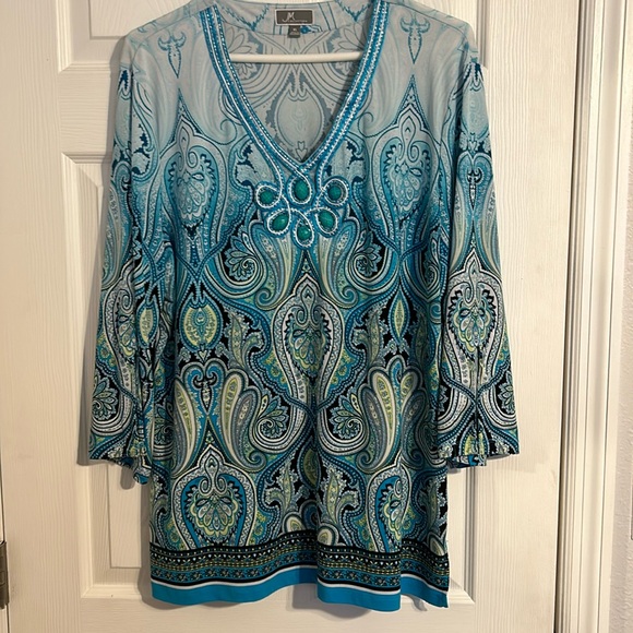 JM Collection tunic top, embellished neckline, 3/4 inch sleeves with slit, side slits, size XL
