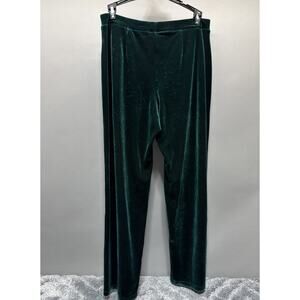 JM Collection Velour Pants Size M Comfy Long Green Wide Leg Velvet Slacks