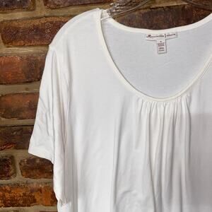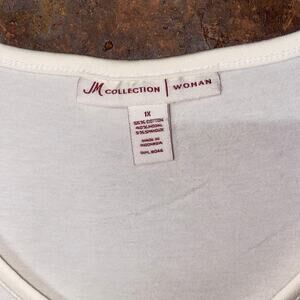 JM Collection White Short Sleeve Pleated Scoop Neck Top Women's Size 1X