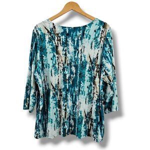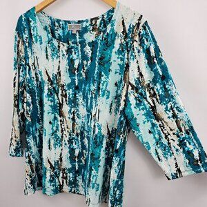 JM Collection Woman 2X Top Turquoise Abstract Print 3/4 Sleeve Stretch Fall Work