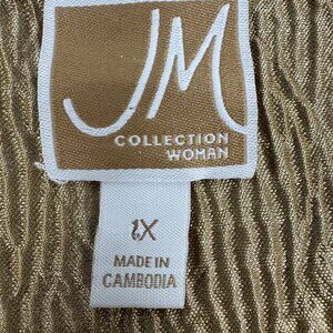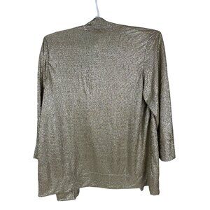 JM Collection Woman Metallic Open-Front Cardigan 1X Gold & Silver Polyester