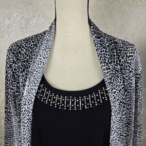 JM Collection Woman Size 3X Black White Animal Print Jacket Attached Beaded Tank