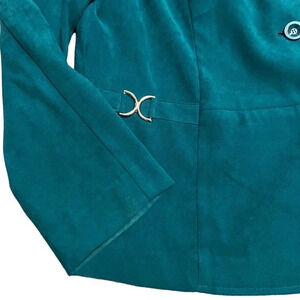 JM Collection Woman Teal Faux Suede Blazer Jacket Silver Accent