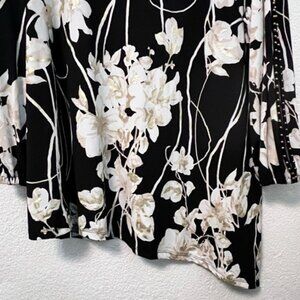 JM Collection Woman tunic, with Gold foil print accents and Studded Split-Sleeves (Black Eva Floral)