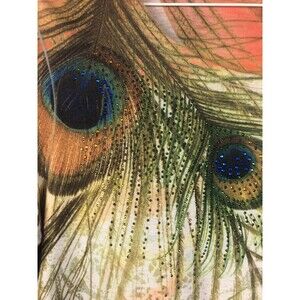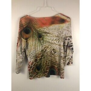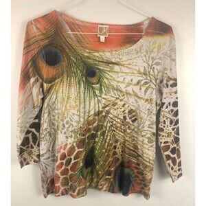 JM Collection Womans Size PL Pullover Blouse Peacock Feather Giraffe Sparkle