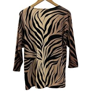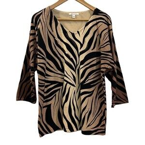 JM Collection Women 3/4 Sleeve V Neck Pull Over Leopard Print Sweater Size L.