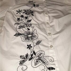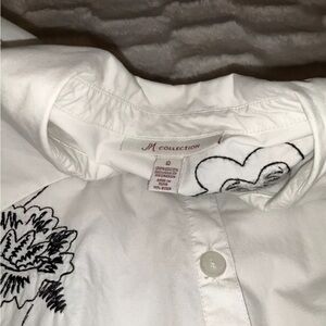 JM Collection Women Blouse Shirt Top 8 Ivory Button-Down Embroidered Floral