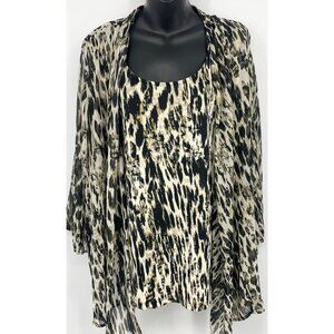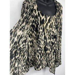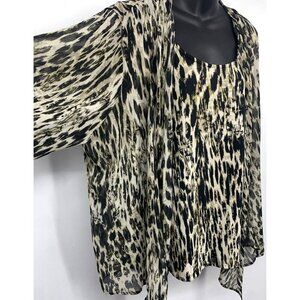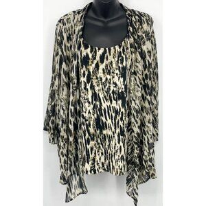 JM Collection Women Blouse Top 2 Fer Shawl Brown Black Plus Tunic 2X Animal New