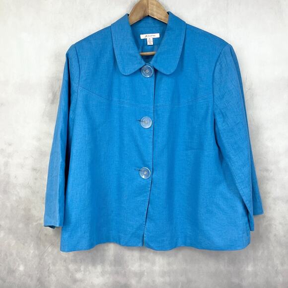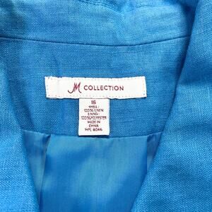 JM Collection Women Jacket 16 Linen Blue 3/4 Sleeve Coastal Classic Boxy READ