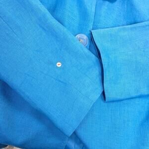 JM Collection blends timeless design with a relaxed, structured silhouette in this vibrant blue linen jacket. With oversized buttons and a boxy, lightweight shape, this piece offers an easy layer for casual, resort, or office-ready outfits