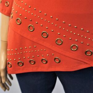 JM Collection Women Tunic Blouse Studded Terracotta Color Size Petite Small