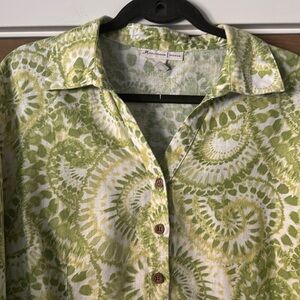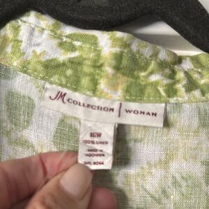 JM Collection Womens 16W Linen Button Up blouse Top Lagenlook coastal grandma