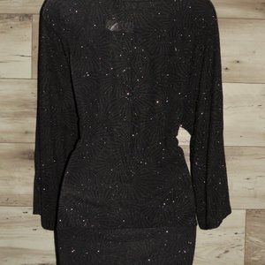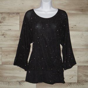 Pre-Owned, Great Condition! Blended Fabrics. Elegant Sparkling Glitter Sequins Black Lined Blouse.