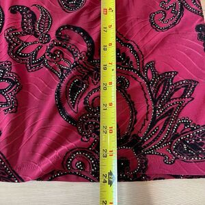 JM Collection Womens Blouse PL Red/Black Velvet Beaded Paisley dark academia