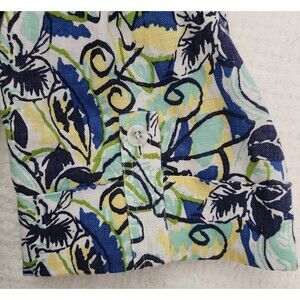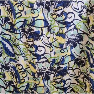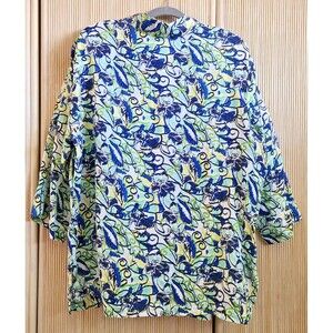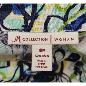 JM Collection Women's Blouse Size 18W Linen Button-Up 3/4 Sleeve Floral EUC