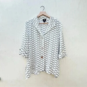 JM Collection | Women's Blouse White Crinkle Fabric 3/4 Sleeve Petite XL