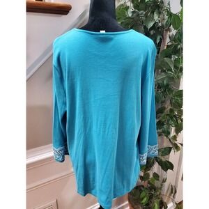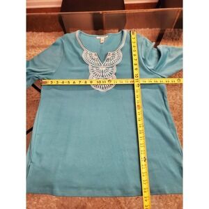 JM Collection Women's Blue Cotton V-Neck Long Sleeve Casual Top Blouse X-Large.