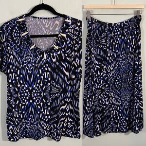 JM Collection Women's Blue Graphics 2 Piece Skirt Set Size M