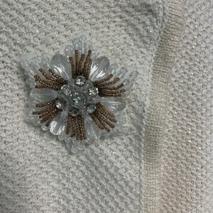 JM Collection Women's Brooch Topper Eggshell Cotton Blend Cardigan Top Size S