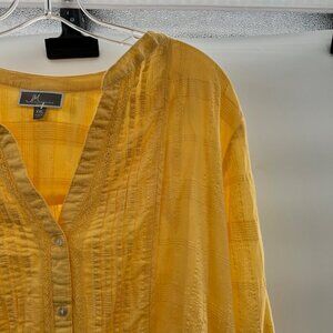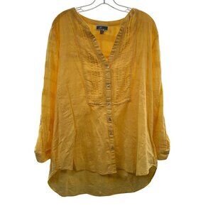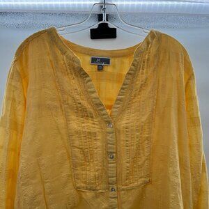 JM Collection Women's Button Down Long Sleeve Top Yellow Size XXL