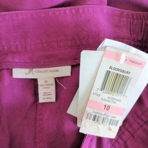 JM Collection Womens Fuchsia Pink High Rise Drawstring Capri Pants Size 10
